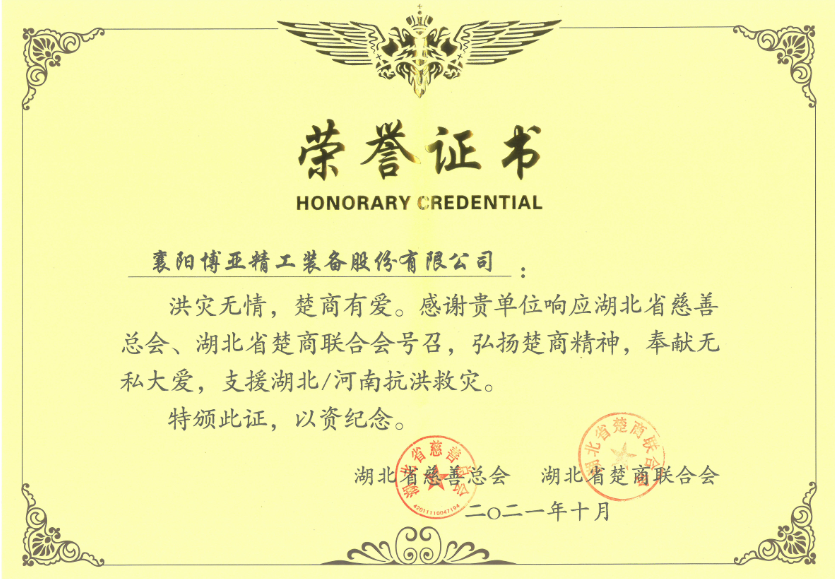 近年來,博亞公司始終積極倡導(dǎo)“企業(yè)發(fā)展不忘回饋社會(huì)”理念,大力弘揚(yáng)光彩精神,積極履行社會(huì)責(zé)任,主動(dòng)參與精準(zhǔn)扶貧、鄉(xiāng)村振興、光彩事業(yè)和公益慈善事業(yè),累計(jì)捐贈(zèng)資金1000多萬元。2018年被評(píng)為全國(guó)“萬企幫萬村”先進(jìn)民營(yíng)企業(yè)。2020年被全國(guó)工商聯(lián)表彰為抗擊新冠肺炎疫情先進(jìn)民營(yíng)企業(yè)。2021年4月,公司黨委書記、董事長(zhǎng)李文喜被表彰為“全省脫貧攻堅(jiān)先進(jìn)個(gè)人”,5月,被表彰為湖北省光彩事業(yè)助力鄉(xiāng)村振興、社會(huì)公益“光彩之星”,公司被表彰為助力鄉(xiāng)村振興“萬企興萬村”行動(dòng)標(biāo)兵。同時(shí),為把博亞人和、擔(dān)當(dāng)精神傳承下去,在2020年修訂公司章程時(shí),寫入了黨建和履行社會(huì)責(zé)任的具體要求,用實(shí)際行動(dòng)詮釋了博亞公司的家國(guó)情懷和責(zé)任擔(dān)當(dāng)。